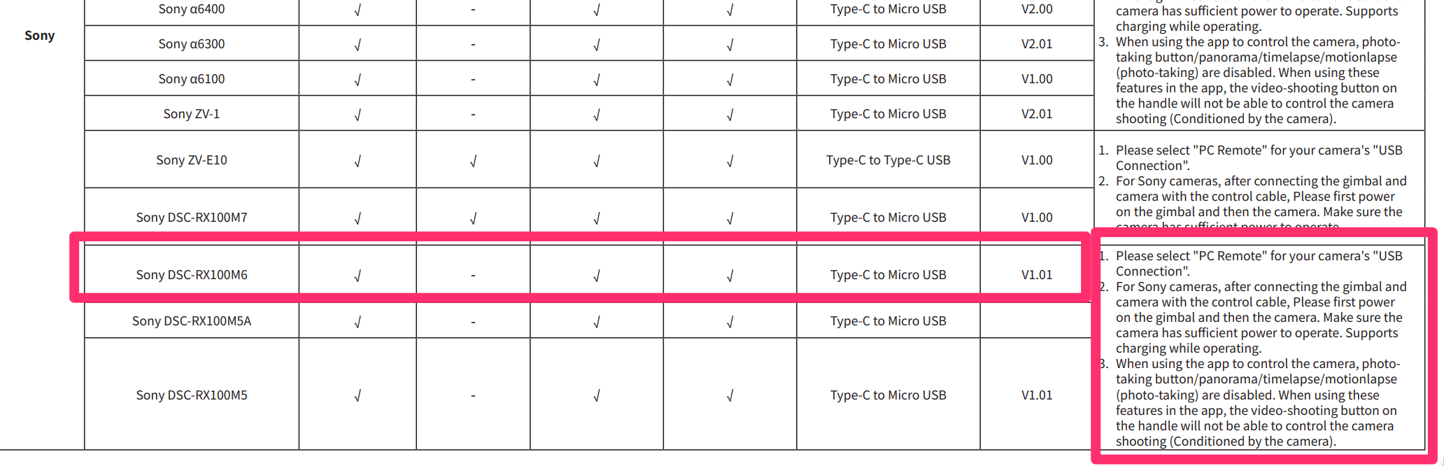 カメラコントロールリストを見てみると、ファームウェアが1.01とありますがSonyのサイトには「現在提供されているアップデート情報はありません」とのこと(嘘情報なのか海外版にはあるのか)、その横に注意書きがありました。ざっくり要約すると以下です。