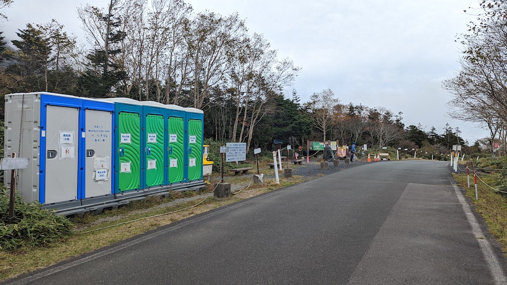 小田越登山口に到着。仮設のトイレもあります。繁忙期はシャトルバスがあるそうです。