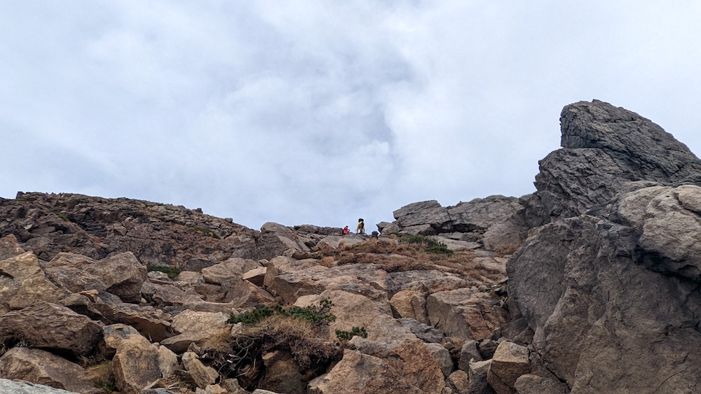 終盤戦となる大きな岩場。白いペンキ印が目印になります。逆に印を外れるコースは危なく感じました。ありがとう先人。