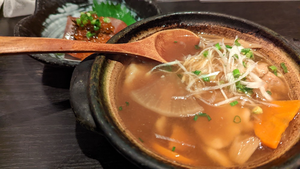 盛岡に戻り、カーシェアを返して、ホテルにチェックイン。紹介された居酒屋でごはんです。地元料理の「ひっつみ汁」がしょっぱくて登山後の体に染み渡ります。