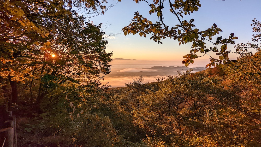 日の出30分前の真っ暗なときに登り始めたので、写真は下山後のものです。さすがに岩手のソウルマウンテン、キャンプ場もあるためか駐車場はとても広いです。