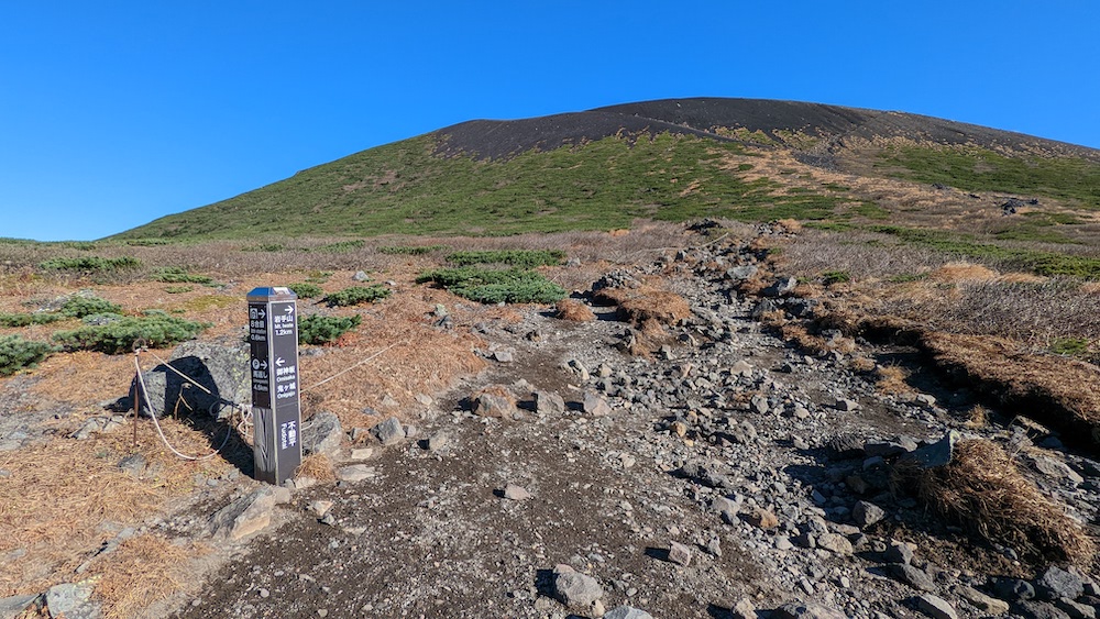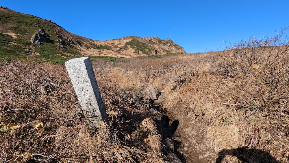 登りにくいザレ場を終えると、緩やかな頂上への道が続きます。頂上手前がこうなっていると「ああ、登りきれたな」としみじみしながら歩けるのが好きです。