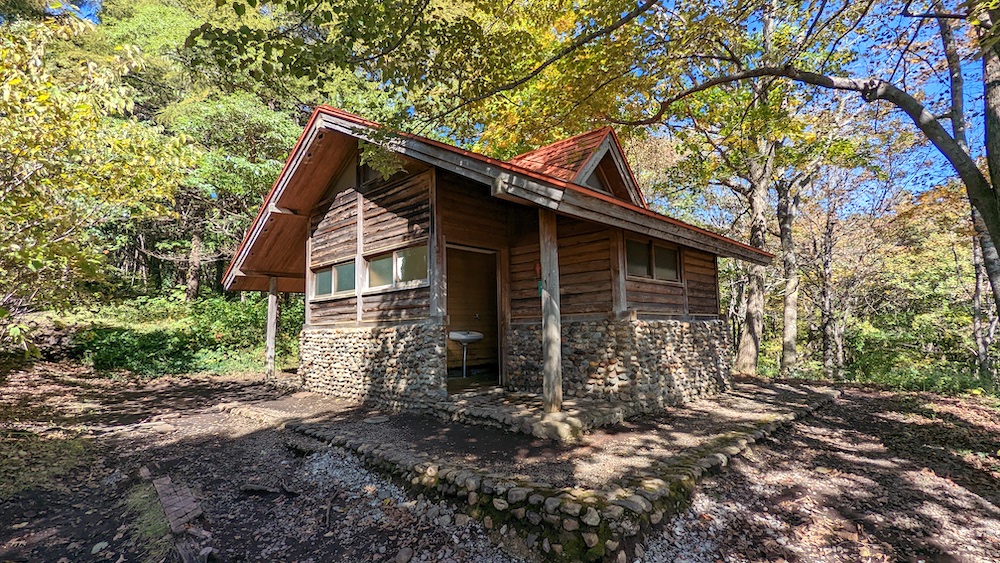 駐車場から少し登ると古いトイレがあります。ただ少し行くときれいな新しいトイレがあるので、そこで準備をしました。