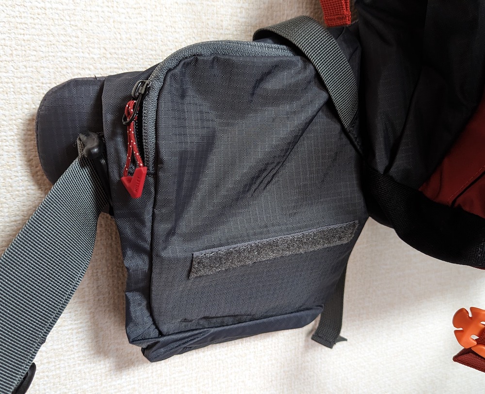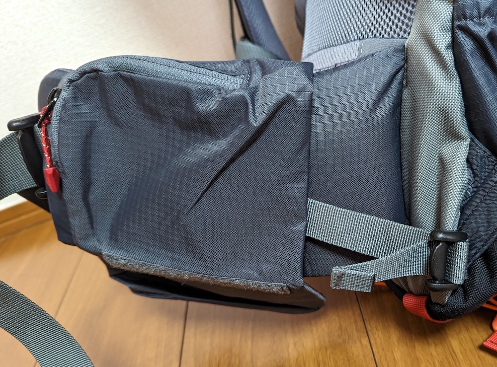 そんな便利な大型ポケットがサースフェーにはないのですが、ウエストベルトの大型ポケットと大きめのリッドにポケットが2つあるので、いまのところ困ってはいないです。将来困りそうな場合は、メッシュポケットを自作してつけようかなと思っています。
