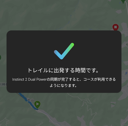 これで Instinct 2 Dual Power のナビからコースを実行すれば、ヤマレコからインポートしたコースをたどれます。