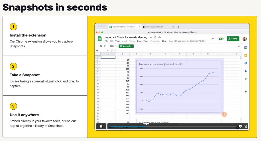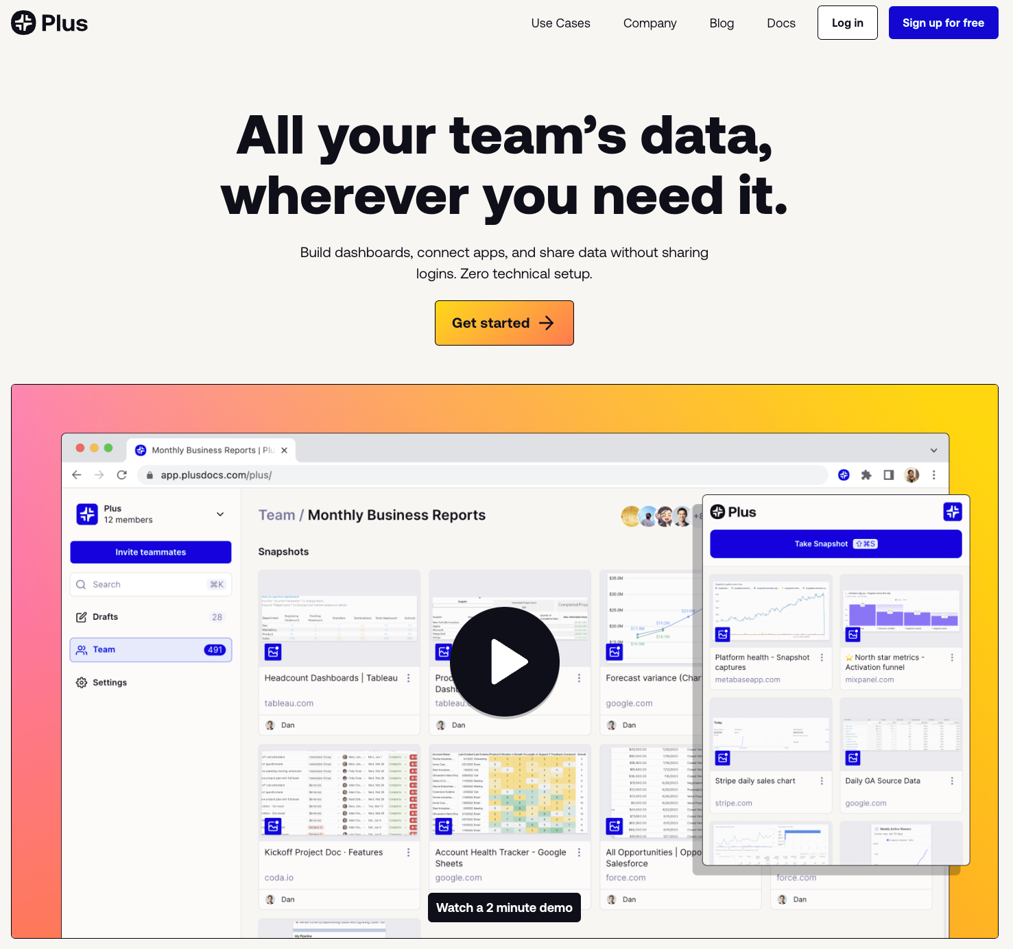 MTGのたびにグラフを貼り付けたりする時代は終わった! と感じてしまうぐらい便利な「Plus」というサービスを教えてもらました。「チームのすべてのデータを必要なときにいつでも取得できる」のを売りにしたライブスクリーンショットツールです。試してみたところ、本当に画面をキャプチャするだけで、自分の好みのデータダッシュボードを作れます。