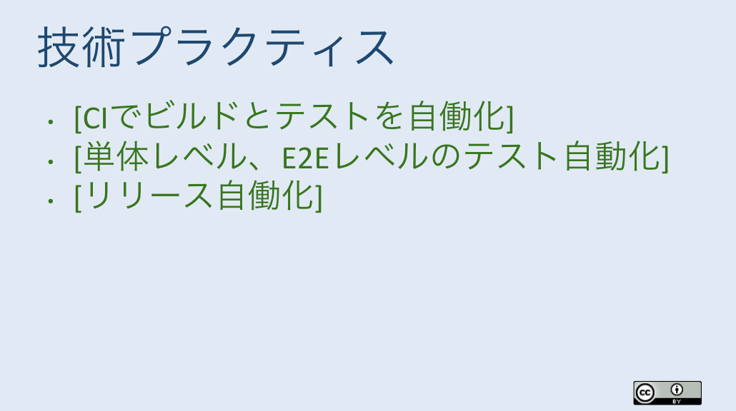 追加したスライドです、開発の流れをまとめます。図で書いてもわかりやすいかもしれませんが、頑張りすぎると辛いのであくまでシンプルにです。