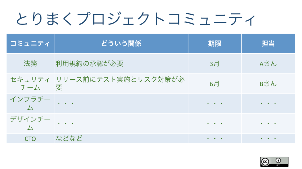 これによって、彼らはわれわれのために備えられ、必要なときにサポートできるようになります。そのために、誰が、いつまでに、何をやるかも整理しましょう。
