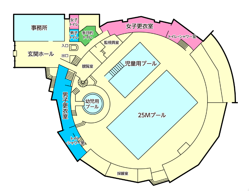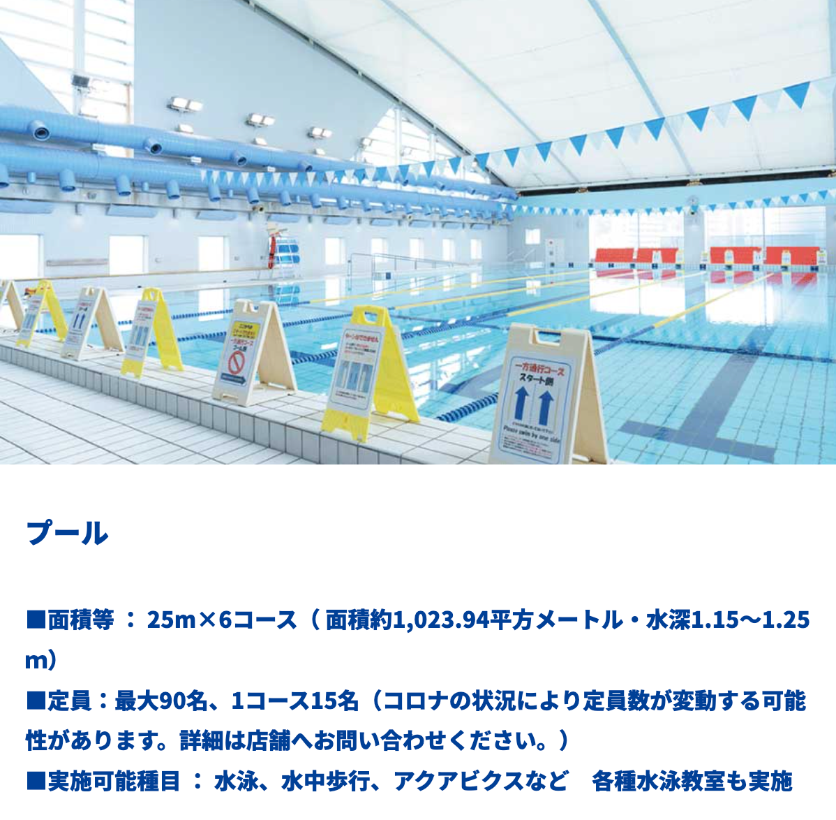 - 25mプールは完泳コース片道4コースのみ