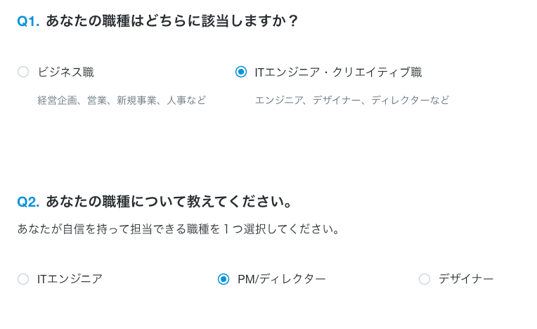 今の時代は職種がたくさんありすぎて、選ぶもの大変だし、複数の職務を見ている場合はどれを選べばいいねん!となりがち。でも、HiPro Direct for Localだと2回選択するだけです。