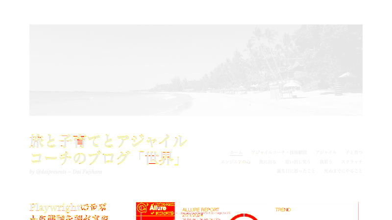 ブログのタイトル部分(旅と子育ての〜)は変えてないのですが、文字のにじみ方が差分になって赤くなっています。これはなんとか除外したい。