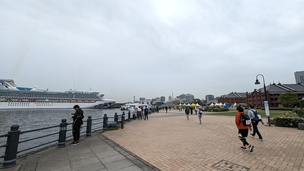 みなとみらいスタートなので、まずは観光地を歩き抜ける形になる。GW初日とあって人は多く、いくつかイベントが開催されていたのでいつもより大賑わいだった。休日をのんびり過ごす人たちの脇を、少し早足の集団がすり抜けていく。