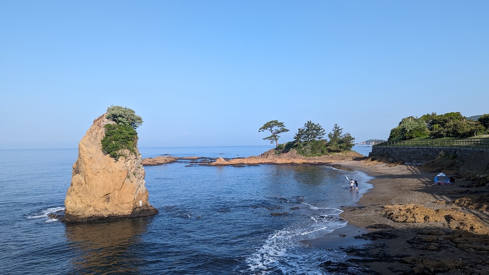 この日はニュースで話題になるぐらいの夏日となった。これからも海岸線を歩くことになるのだが、海岸は沢山の人で賑わっていた。日の出とともに右手(左手は海側)からの日差しが強く、比較的日陰が多い選んで歩くために、道の右手を歩いていく。