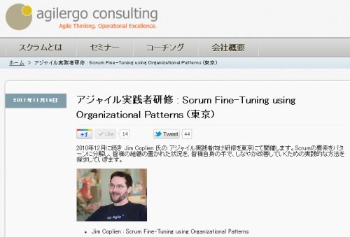 1/16(月)にアジャイル実践者研修が開催されます。詳細は、アジャイル実践者研修 : Scrum Fine-T… 続きを読む: 1/16(月)にJim Coplien 氏のアジャイル実践者研修が開催されます