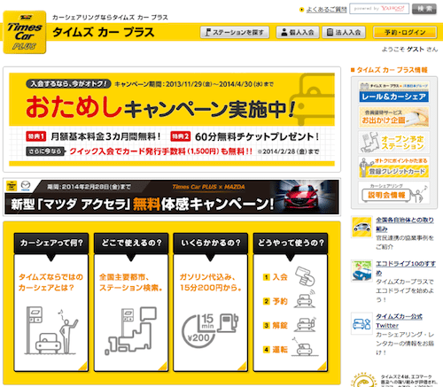 タイムズカープラスの会員サービスがよく練られてて関心してしまう