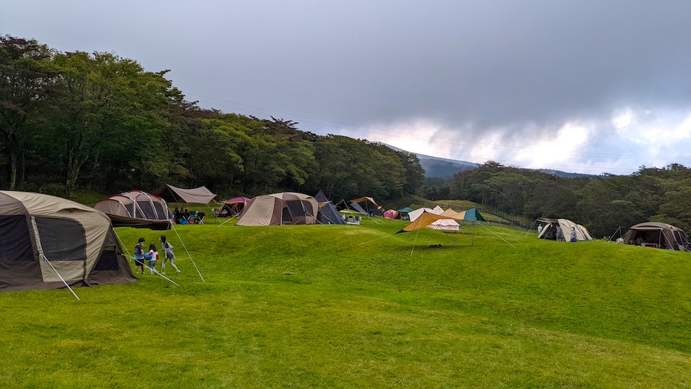 雨が振りそうなので、避難場所としてタープを先に張りました(写真真ん中付近)。この後、土砂降りとなります。 PI… 続きを読む: PICA富士ぐりんぱ テントサイト電源無(グリーン)で、子供二人と俺でキャンプは激務だったよ