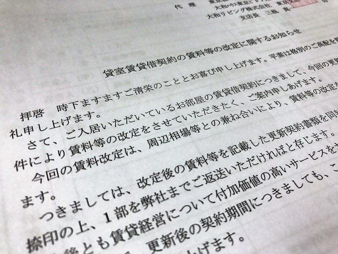 大和リビングから家賃の値上げ案内が来たけど断った話