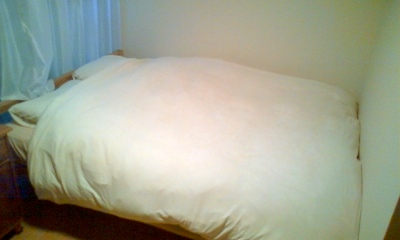完成しました。 ベッドが届いてから寝坊が多くなっています。 木製ベッド・ダブル・タモ材/ナチュラル 高密度ポ… 続きを読む: 寝室完成