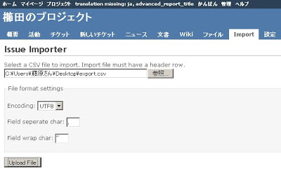 Redmine CSV Import Pluginを試す