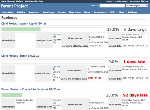 通常、「ロードマップ」モジュールをクリックすると、そのプロジェクトのロードマップだけ一覧表示される。しかし、進… 続きを読む: Redmineプラグイン開発 – Roadmapsプラグインリリース